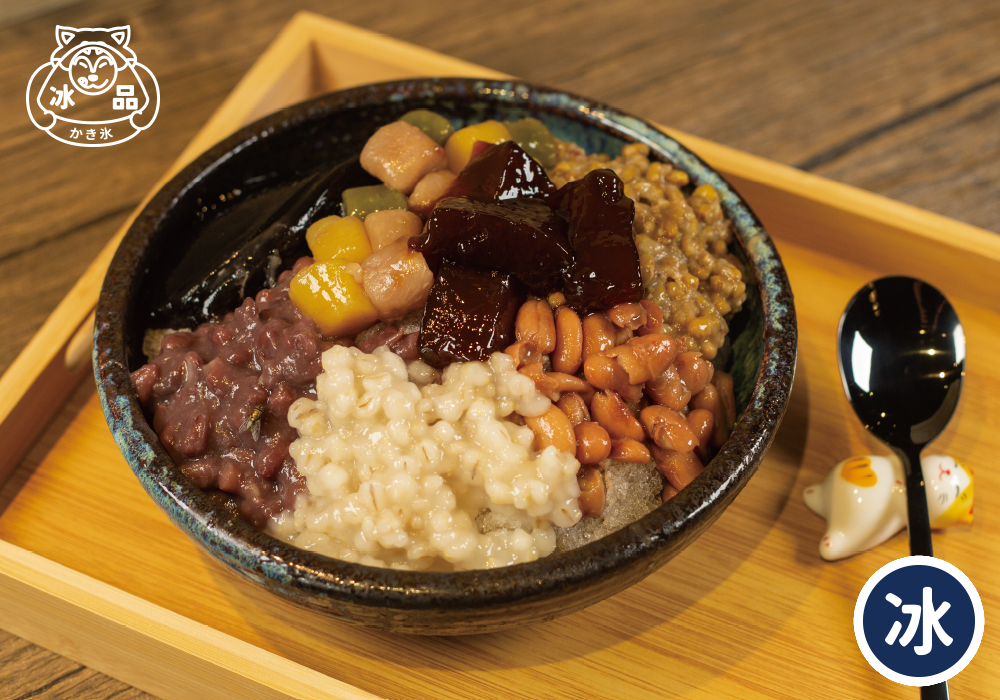 配料使用:紅豆、花豆、綠豆、蜜花生、小薏仁、嫩仙草、粉粿、綜合圓